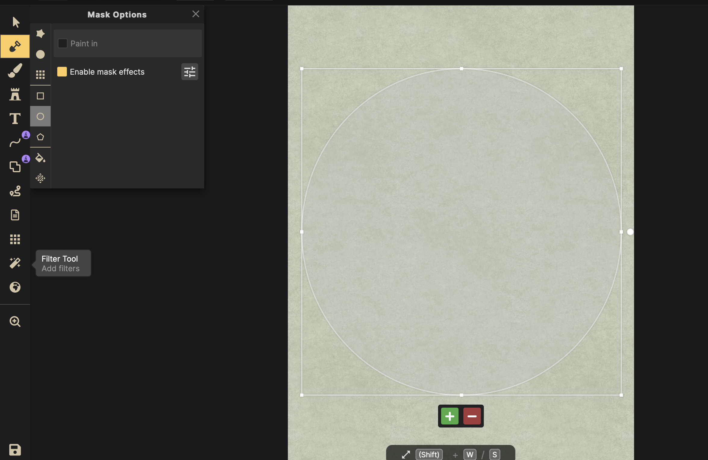 My fantasy novel is set in the center of the Earth, meaning circle. To get the perfect shape I went to the shovel for building and the circle for the shape. I drag and make it as big or small as I need it before clicking paint in.
