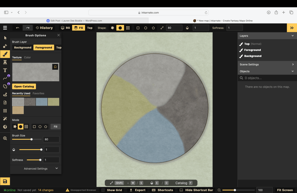 After reading articles about fantasy maps and buying a book on world-building, I knew I needed an ever-changing platform for my map building.