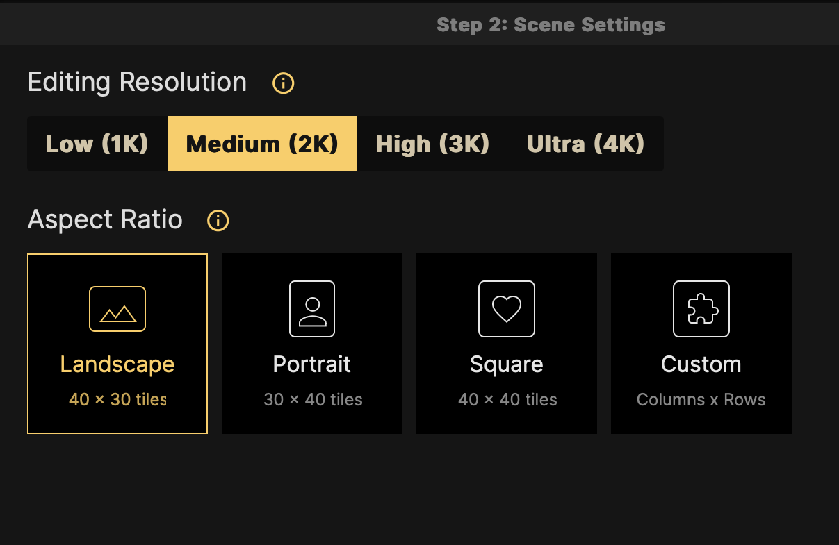 As someone that had practically no idea what resolution or ratio meant for my fantasy map, I went to google to determine what would be best for each. Turns out, the best is what is best for you and your needs. In my case, I needed a map to look at while editing my debut novel and that meant large and clear visuals. I chose Medium (2k) and Landscape.